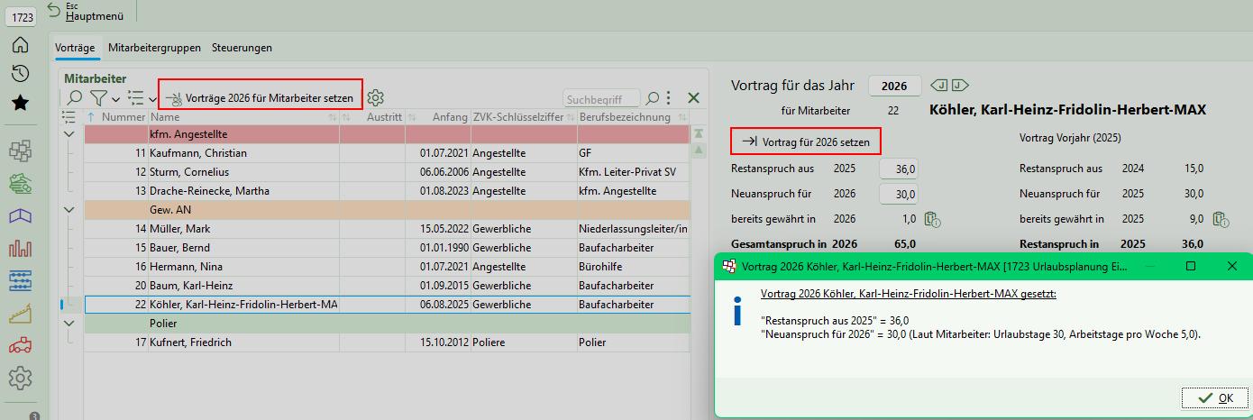 Feiertage - die ja je nach Bundesland unterschiedlich sind - und Ihr mitarbeiterspezifisches Arbeitszeitmodell bzw. Ihre Betriebsferien werden vom Programm bei der Ermittlung der Restansprüche berücksichtigt. Informationen über gewährten
